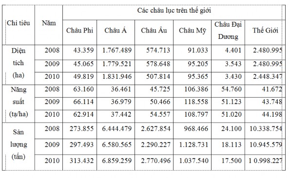 đạt 37.442 tạ/ha. Diện tích, năng suất, sản lượng của một số nước trên thế giới năm 2010 được thể hiện ở bảng 2.1