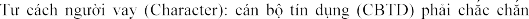 Là mô hình truyền thống đánh giá khách hàng vay vốn dựa vào chủ quan từ phía ngân hàng. Theo mô hình này, các ngân hàng chủ yếu sử dụng các thông tin khác nhau về người vay theo mô hình 6C để đưa ra nhận xét chủ quan của mình, bao gồm các thông tin định tính sau: