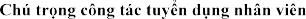 - Khi tuyển dụng nhân viên mới cần thể hiện rõ ràng quan điểm, giá trị mà doanh nghiệp đòi hỏi. Nếu bảng câu hỏi được thiết kế để đánh giá trong thi tuyển chỉ nhắm vào kiến thức, kỹ năng là chưa đủ. Trong quy trình quản lý nhân sự nếu chuyển tải được giá trị, mong đợi của doanh nghiệp vào khâu tuyển dụng thì người được tuyển dụng sẽ hình thành được cảm nhận ban đầu về giá trị văn hóa của doanh nghiệp.