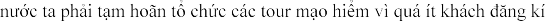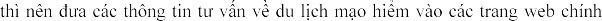 phải bền chí, lấy ngắn nuôi dài nếu không các tour này sẽ dễ “chết yểu”. Bởi nếu khách nước ngoài từ lâu đã được tiếp cận với loại hình này, thì đối với khách Việt du lịch mạo hiểm vẫn còn là một khái niệm lạ lẫm, cần có thời gian cho họ làm quen. Thông ![]()