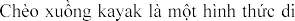 chuyển trên mặt nước bằng cách chèo xuồng kayak. Chèo xuồng kayak có một vài điểm khác với chèo xuồng thông thường. Bởi vì xuồng kayak có một cái buồng lái đóng, còn xuồng bình thường thì có một buồng lái mở. Tuy nhiên, cả hai loại đều sử dụng loại mái chèo hai đầu để hoạt động. Có năm sự phân loại chính: vượt thác, vượt sóng, đi thám hiểm, những chuyến đi nhanh và nhẹ nhàng, cuối cùng là đi giải trí thông thường. Từ những hình thức chính đó, người ta phân ra thành nhiều loại nhỏ nữa. Ví dụ, đi câu cá bằng xuồng kayak là một hình thức đơn giản của đi giải trí đơn thuần. Chiếc xuồng sẽ được trang bị thêm những đồ phụ tùng và sửa lại cho phù hợp với việc câu cá.