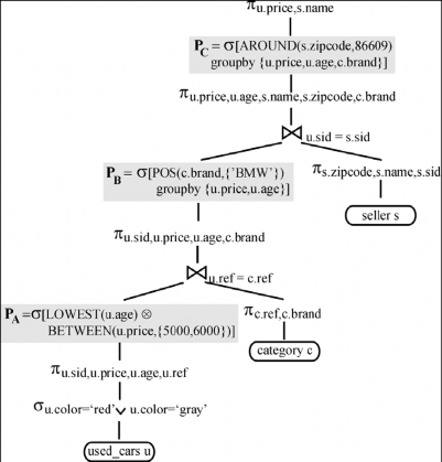 Cho một truy vấn ưa thích Q, cây khởi tạo của nó Tstart là dùng cho Pass-1, ban đầu, công việc của nó tại cây con thuộc đỉnh ưa thích. Cây đầu ra Tre1 là được điều khiển qua Pass-2 mới của chúng ta, hoạt động như thuật toán dưới đây: