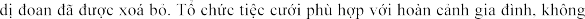 theo quy ước, hương ước địa phương; trang trí lễ cưới giản dị, không rườm rà, phô trương, trang phục cô dâu chú rể đẹp và lịch sự phù hợp với văn hóa của địa phương; âm nhạc trong đám cưới đảm bảo không vượt ![]()